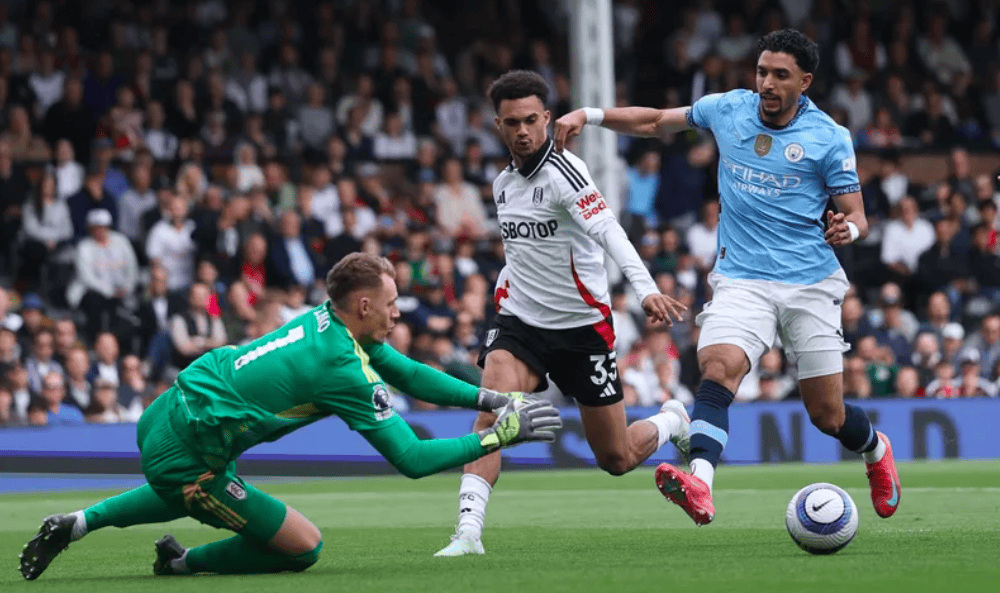 顶住了富勒姆的猛攻,曼城的快攻打得简单高效。第40分钟,多库下底传中,马尔穆什的射门被挡出,尼科·冈萨雷斯跟进的补射打得太正,莱诺稳稳将球没收。